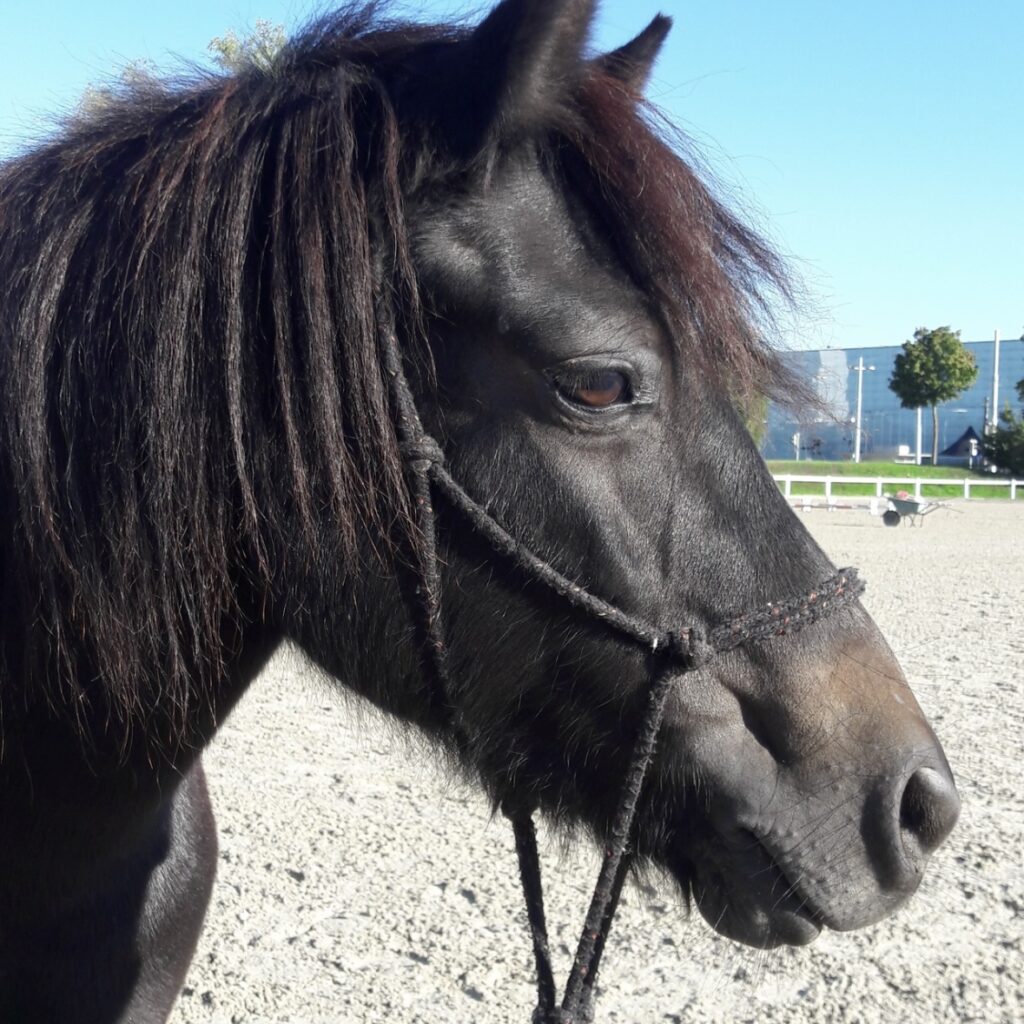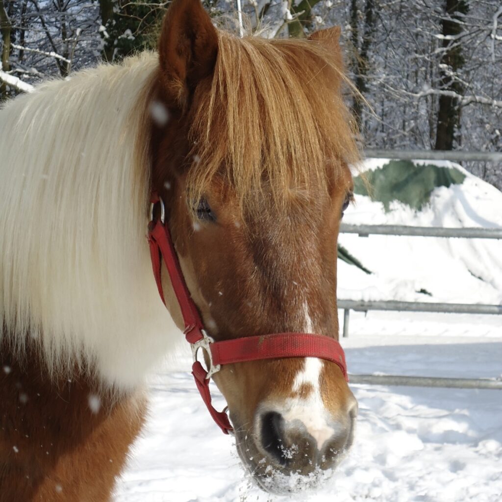Die einzige Stute in unserer Herde. Sie ist eher ein träges Pony, doch wenn sie warmgelaufen ist, hat sie wunderschöne Gänge.
